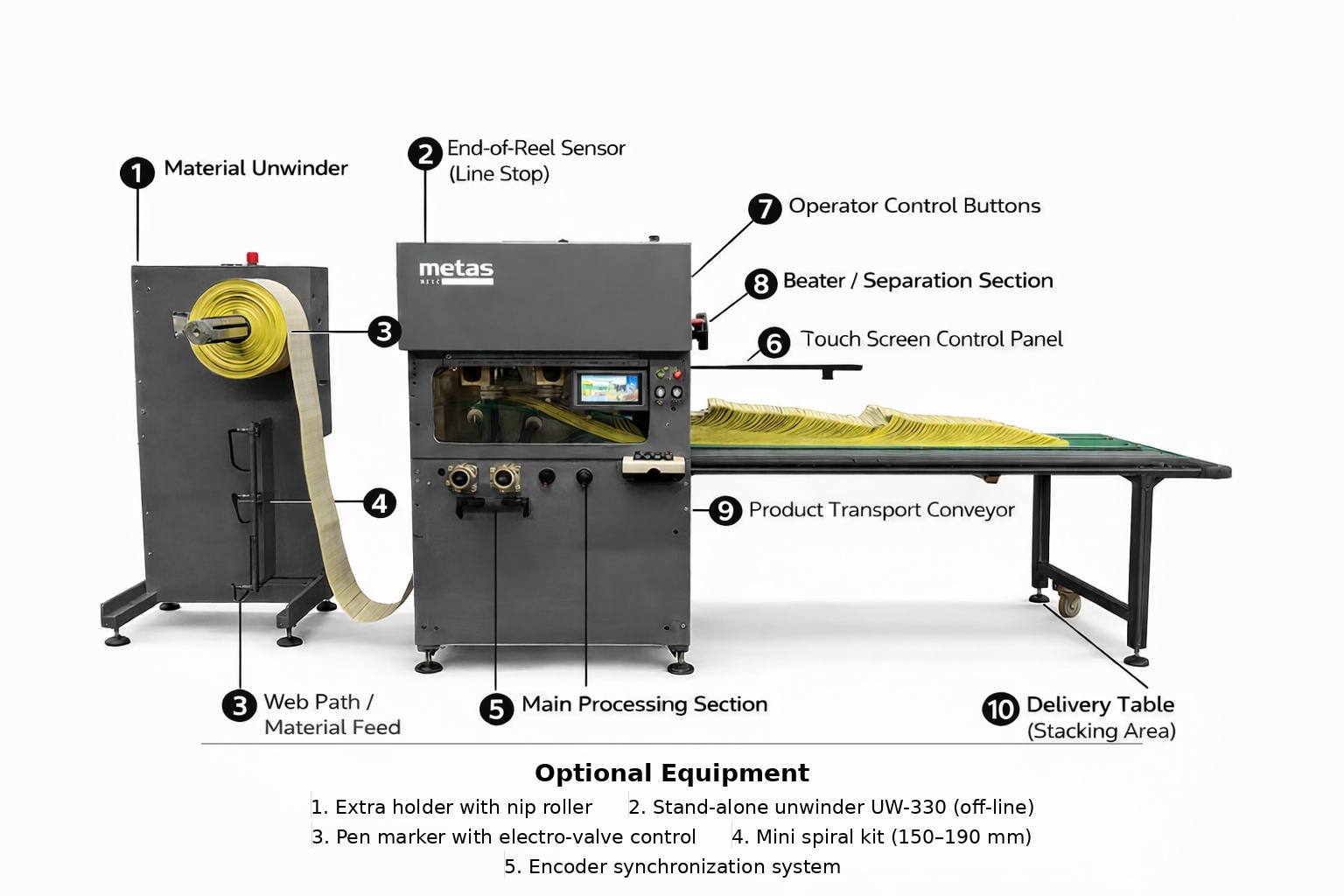 - Versatility: The machine can operate both online with die-cutting units or printing machines and offline with the unwinder model UW-330/400/508-SB, making it adaptable to various production setups.