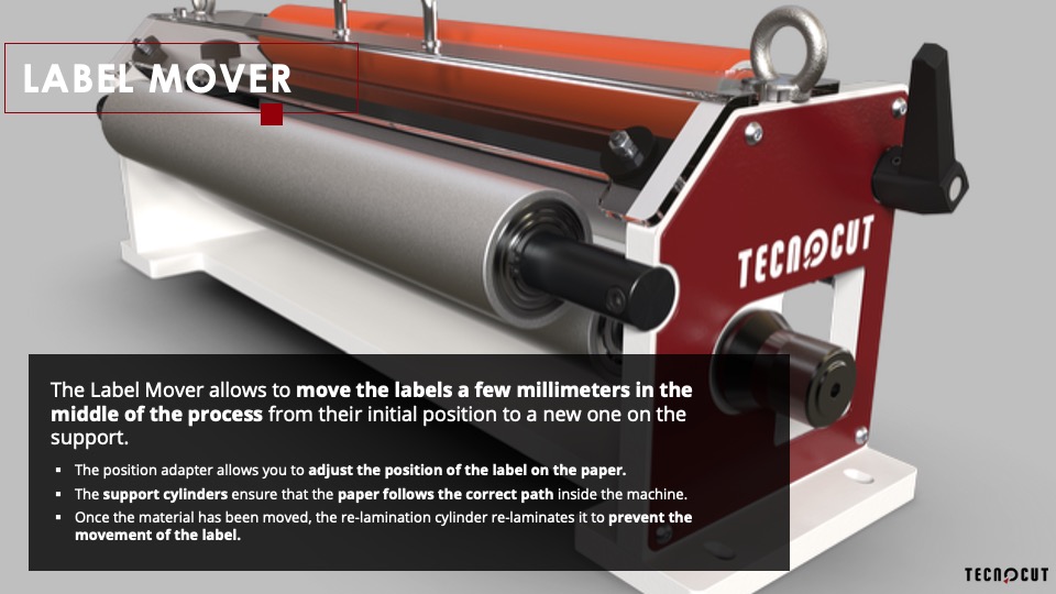 The Label Mover is designed to precisely reposition labels during the production process, allowing for fine adjustments of a few millimeters from their original position to a new, accurate placement on the support. The integrated position adapter enables easy and precise alignment of the label on the web, while the support cylinders ensure smooth material flow along the correct path within the machine. After repositioning, the re-lamination cylinder securely re-applies the label, preventing any further movement and ensuring consistent, high-quality results throughout production.